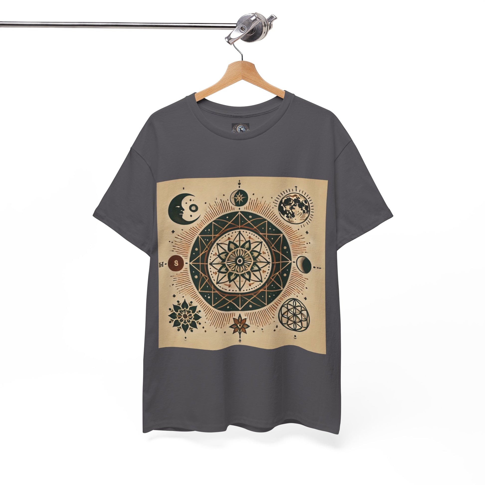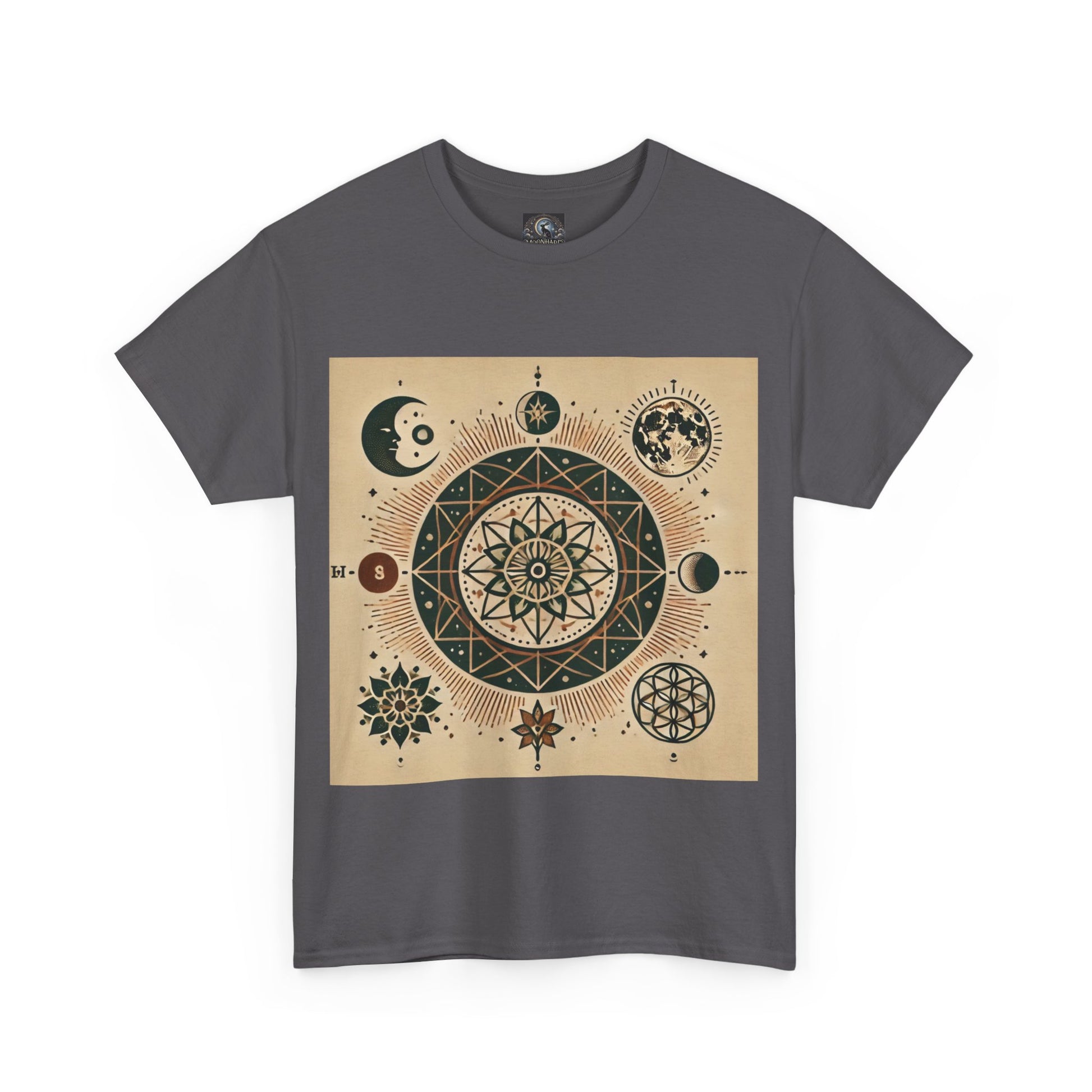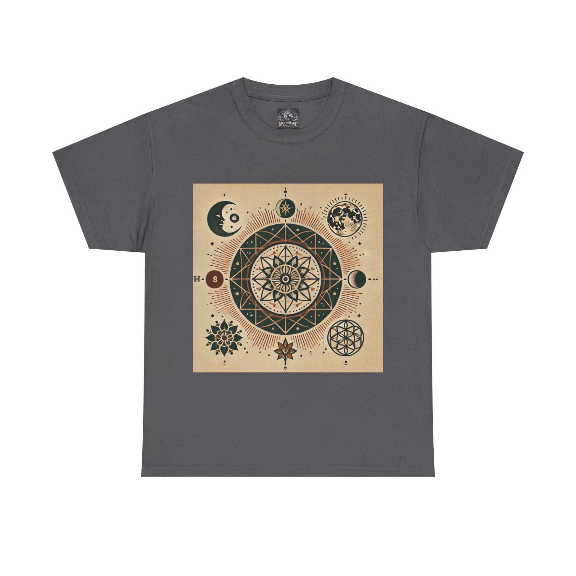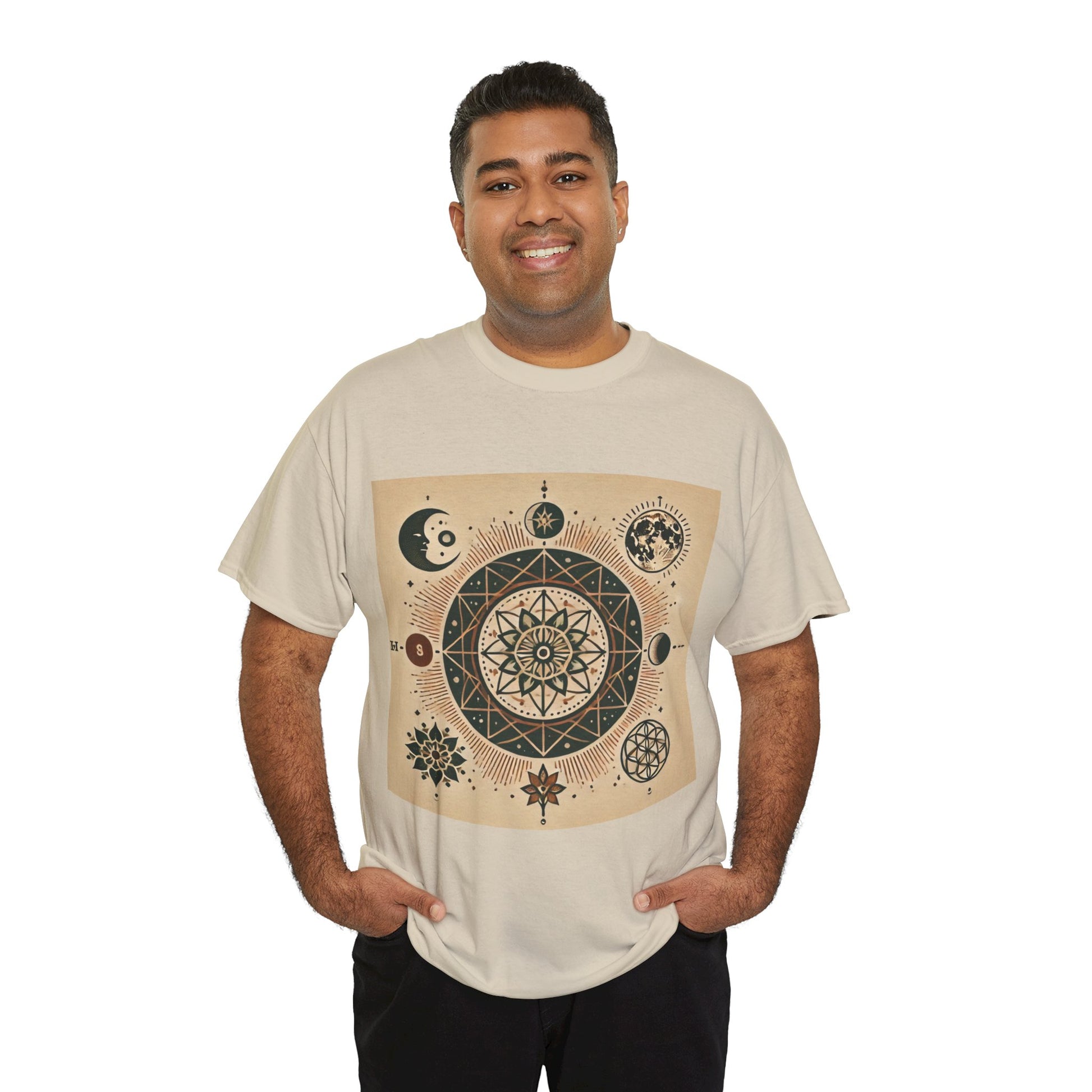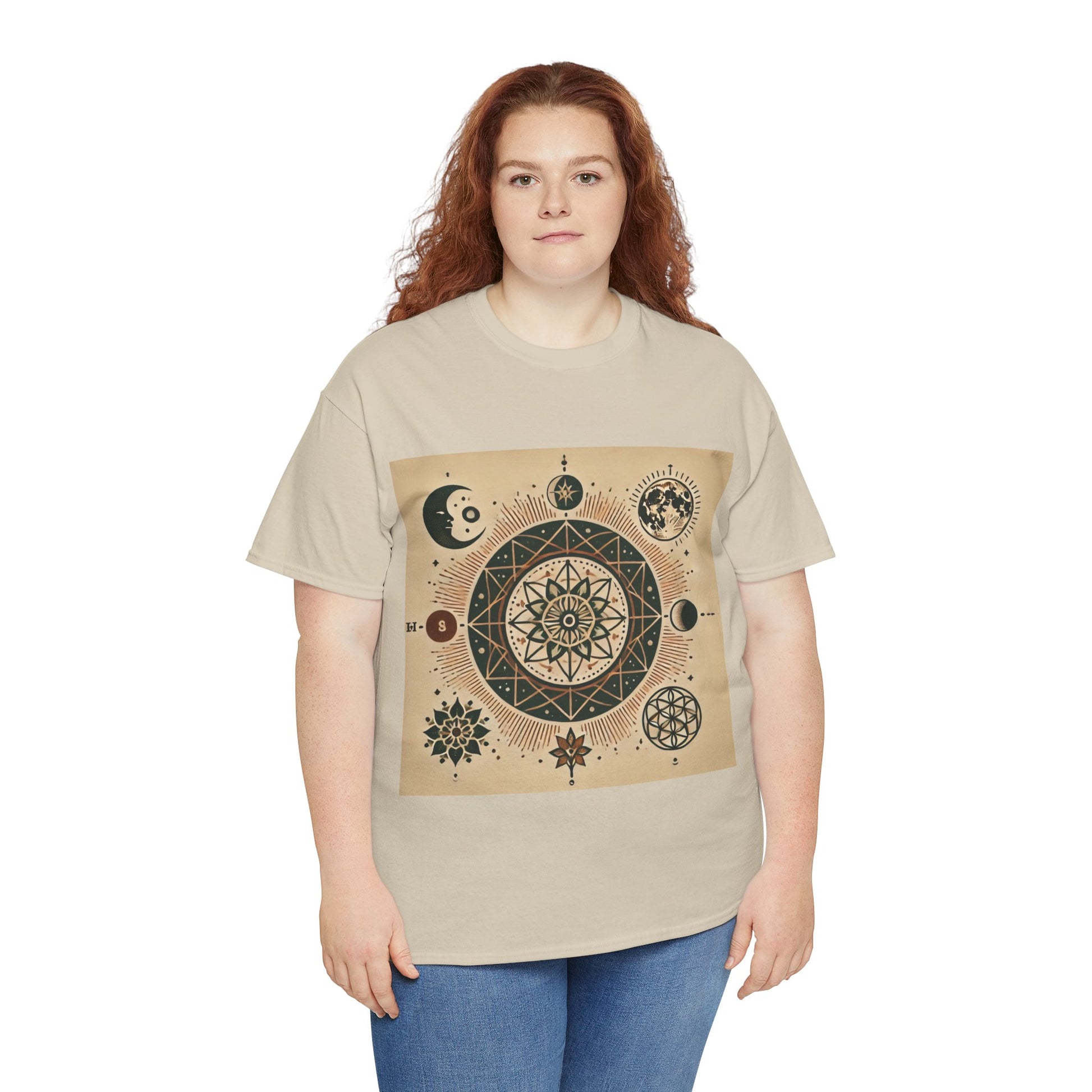 Cosmic Mandala Unisex Heavy Cotton Tee - Spiritual Design for Astrologers & Nature Lovers