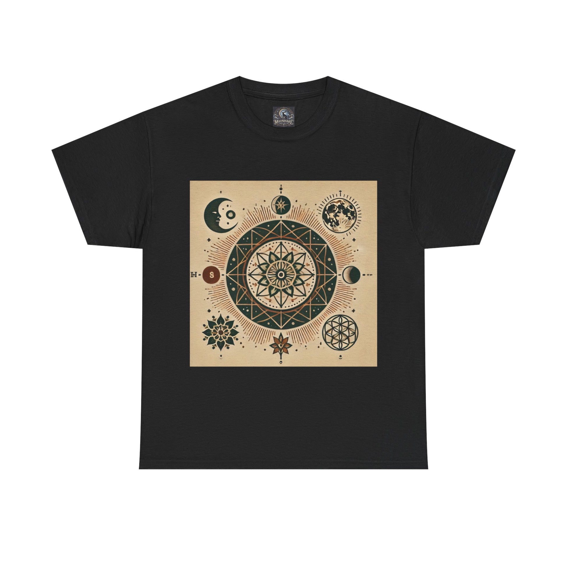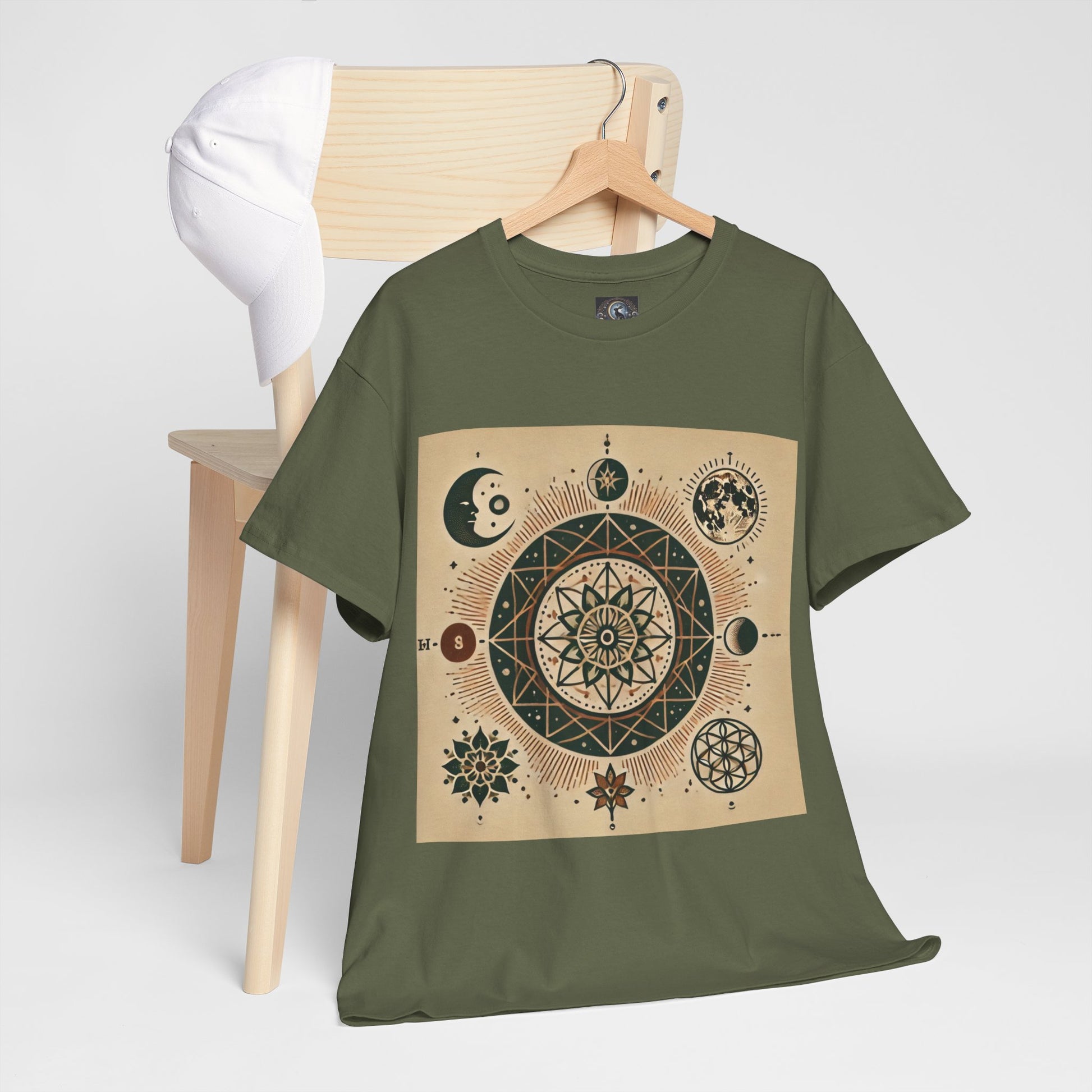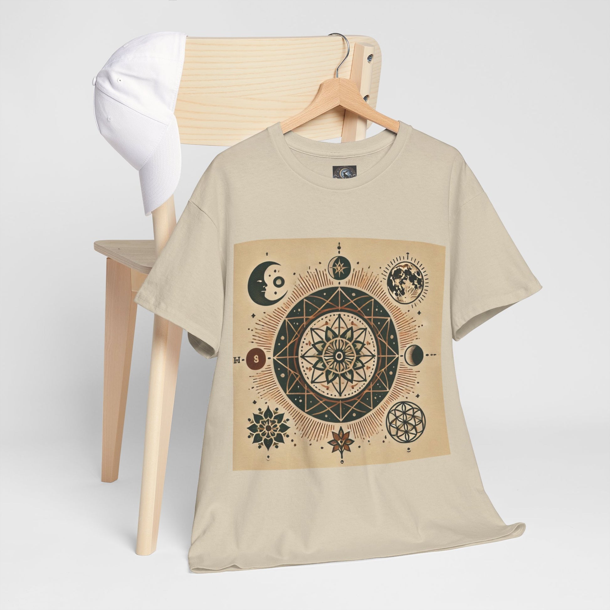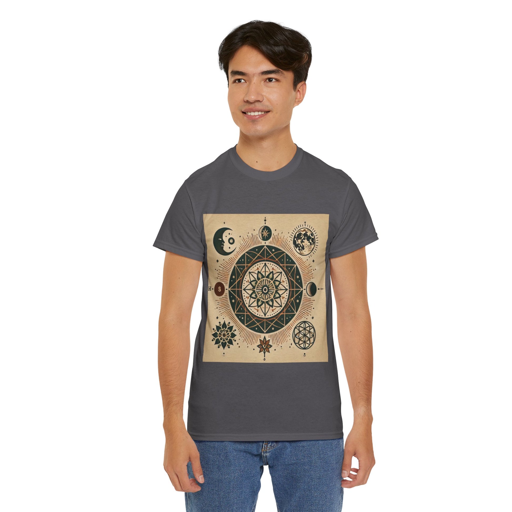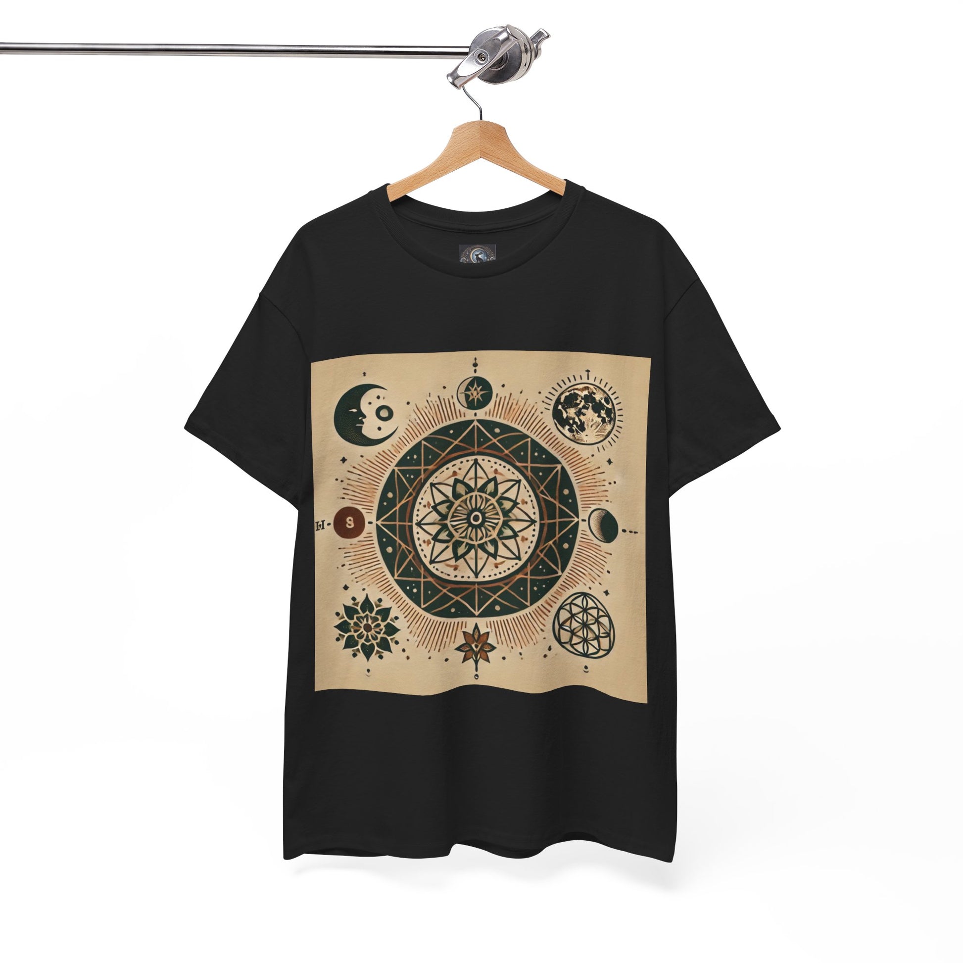 Cosmic Mandala Unisex Heavy Cotton Tee - Spiritual Design for Astrologers & Nature Lovers