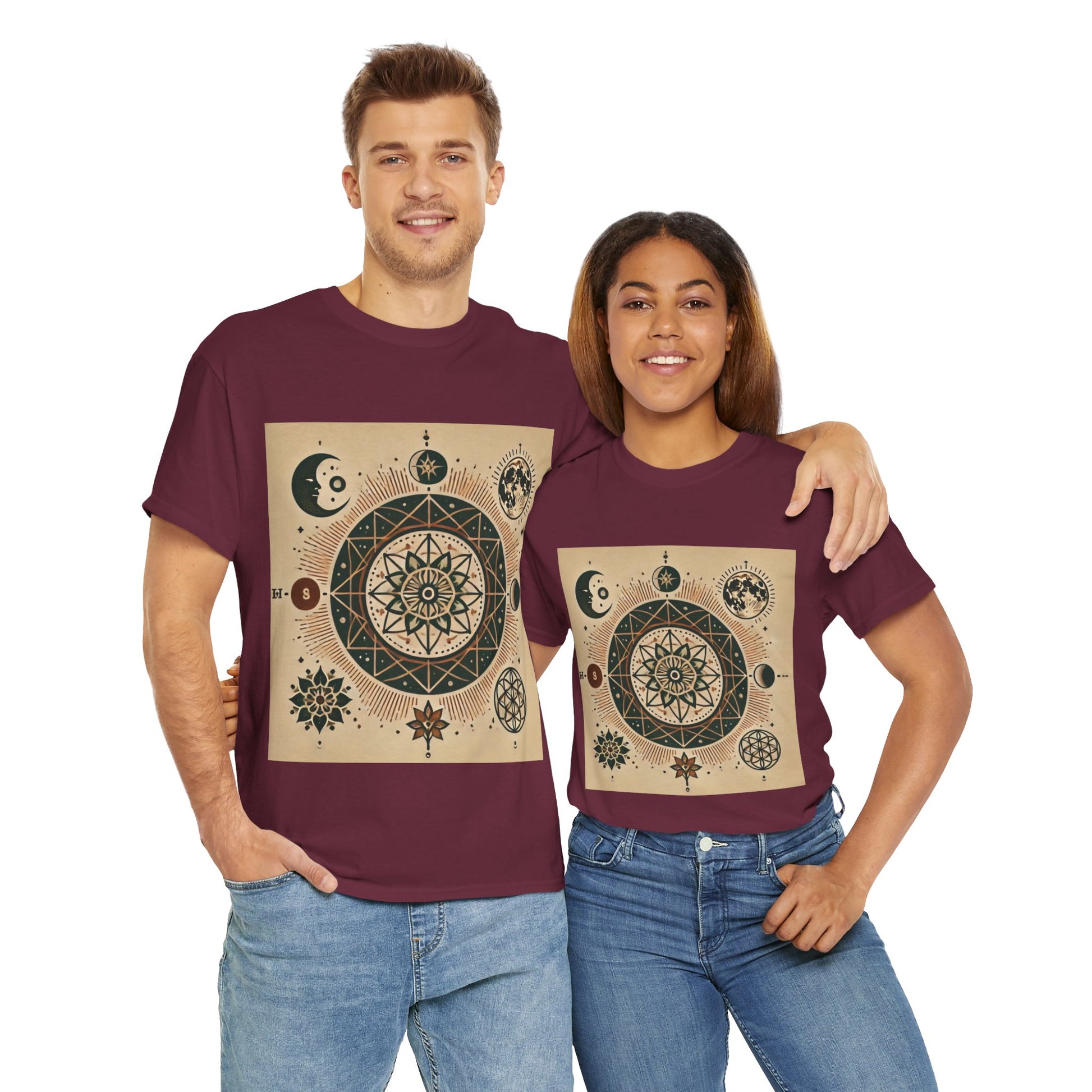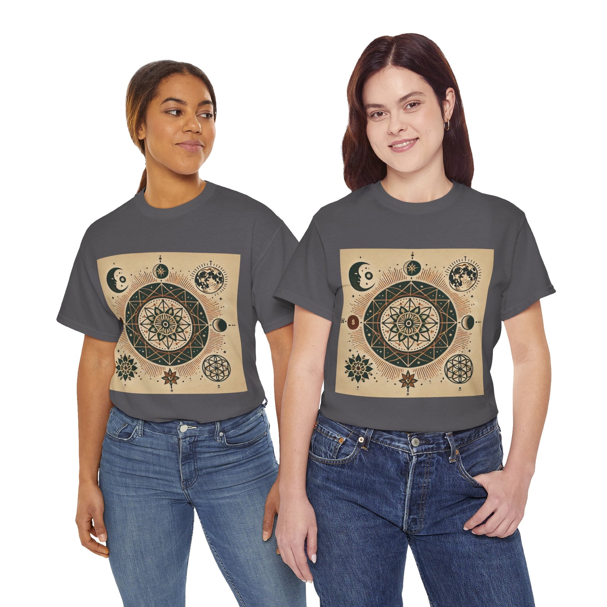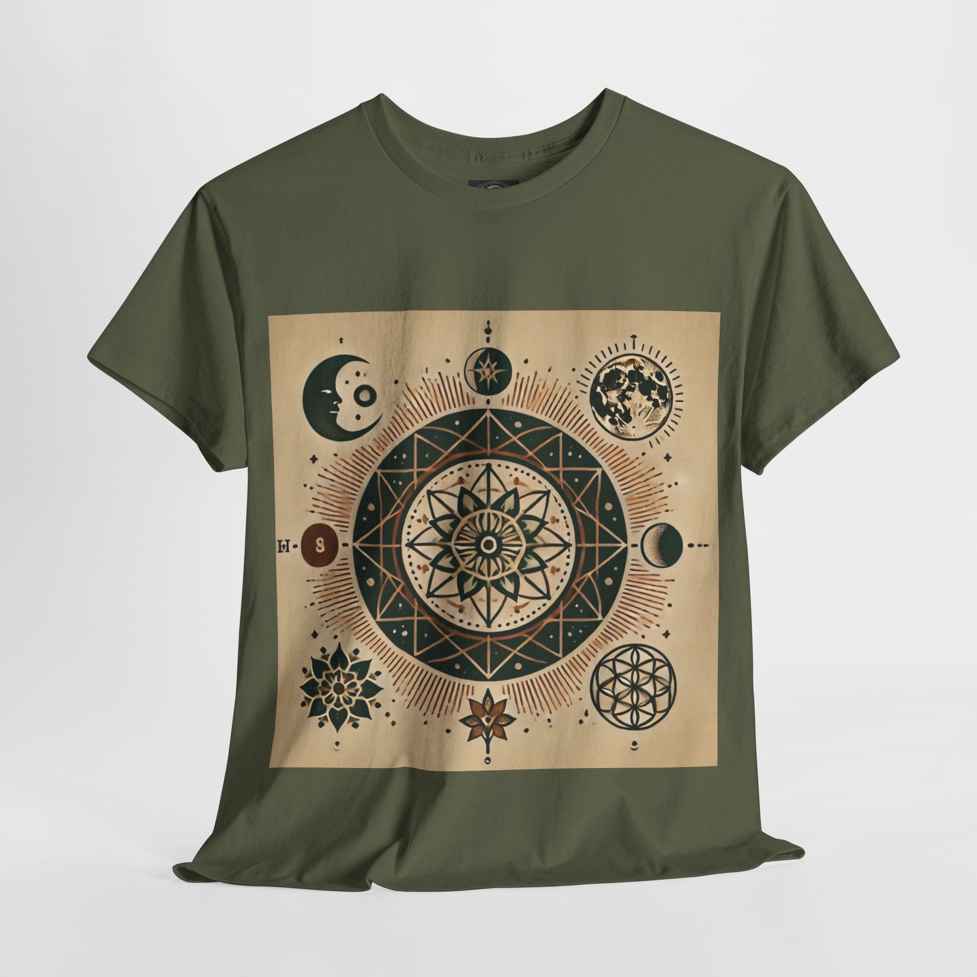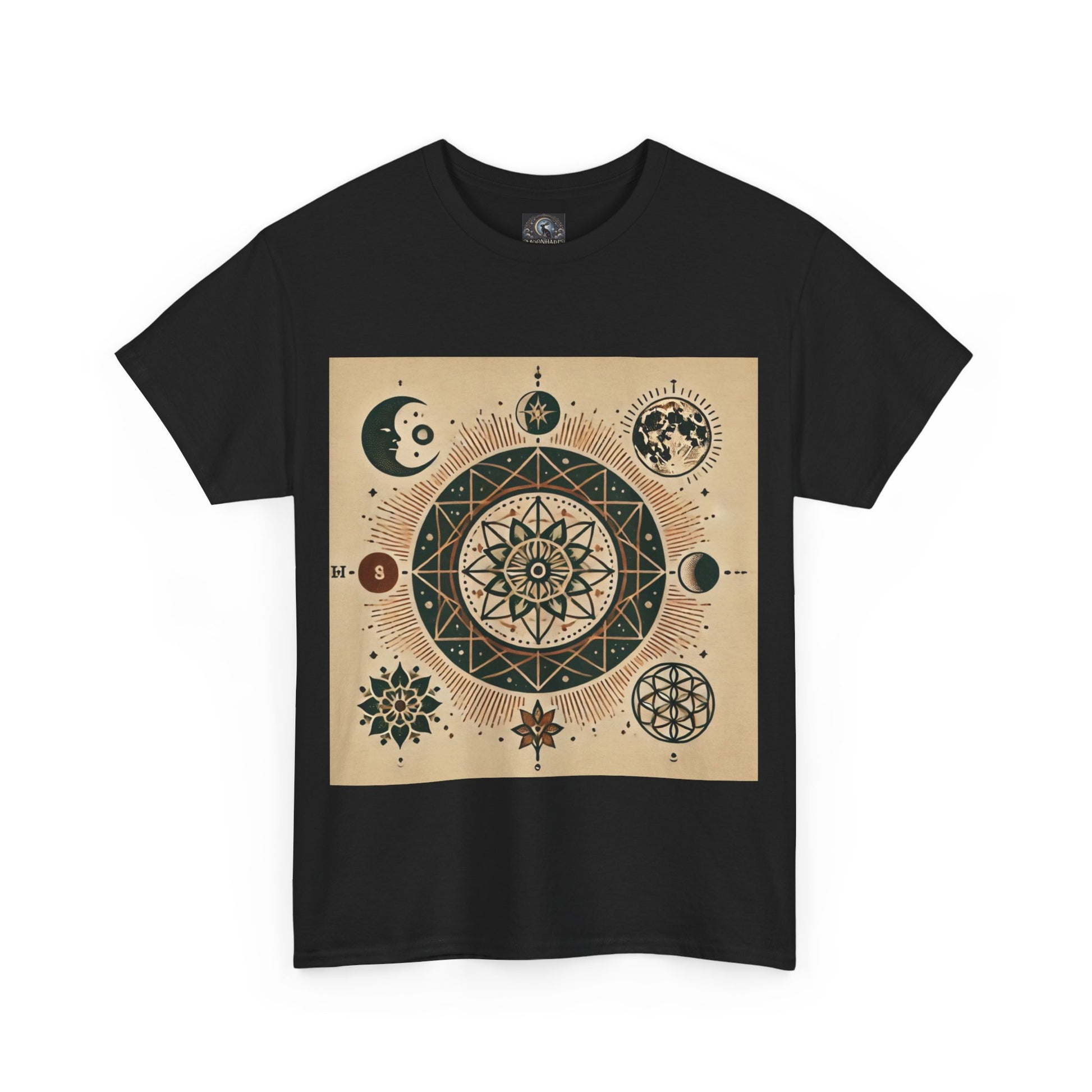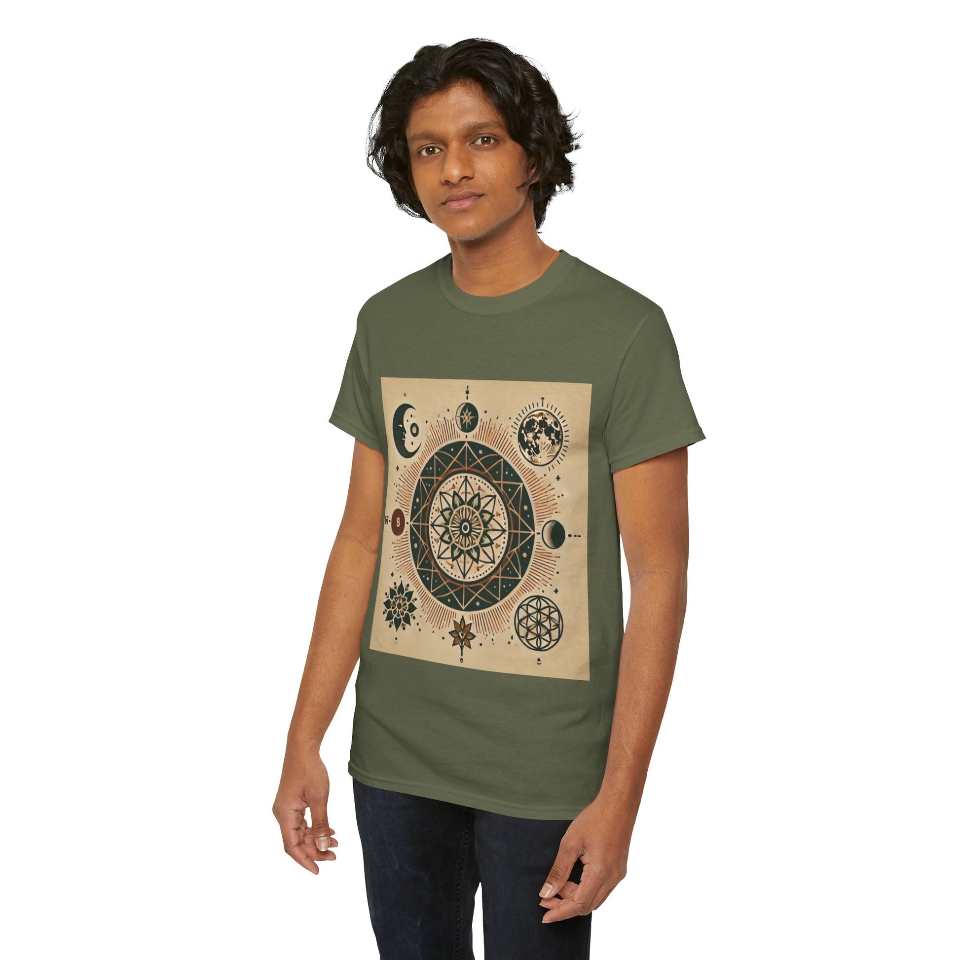 Cosmic Mandala Unisex Heavy Cotton Tee - Spiritual Design for Astrologers & Nature Lovers