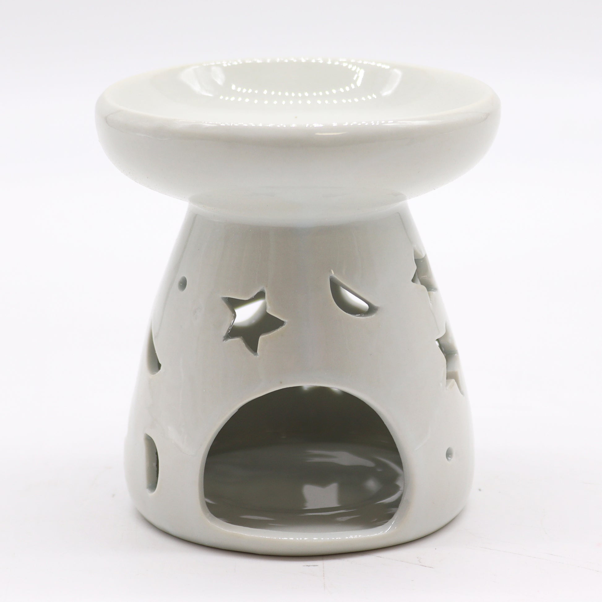 Large Classic White Oil Burner - Moon & Star