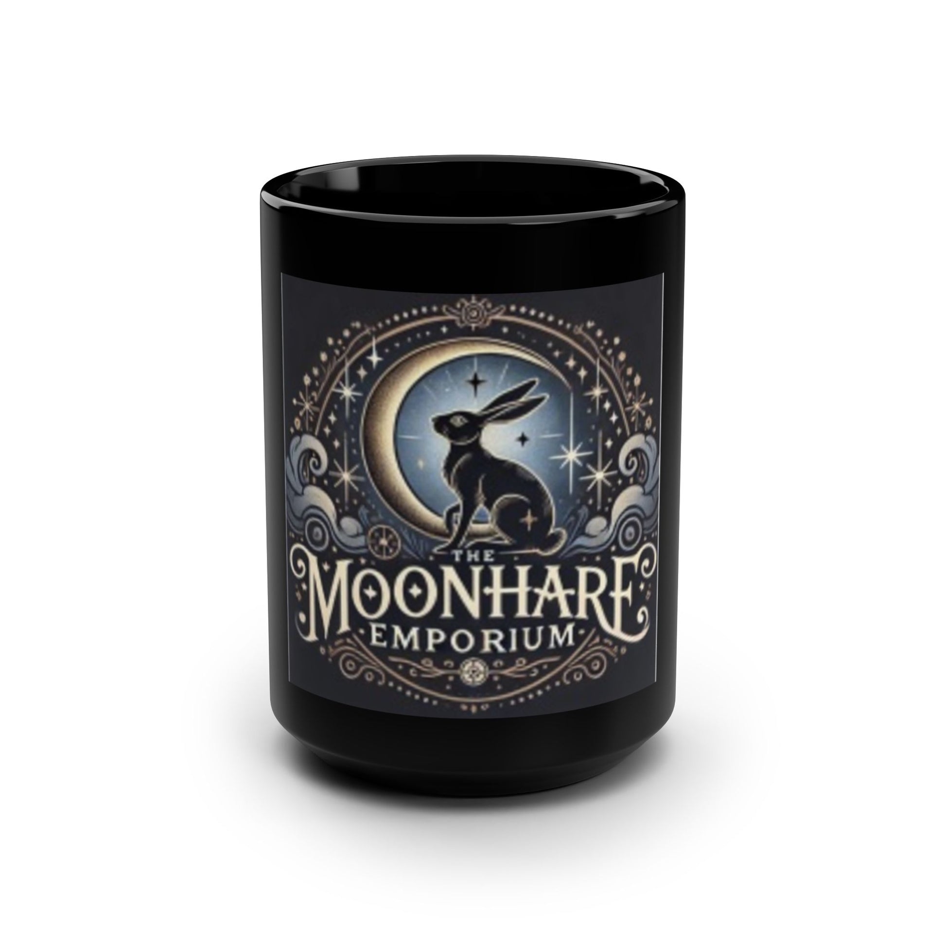 Mystical Moonhare Mug - 15oz Black Ceramic Coffee Cup